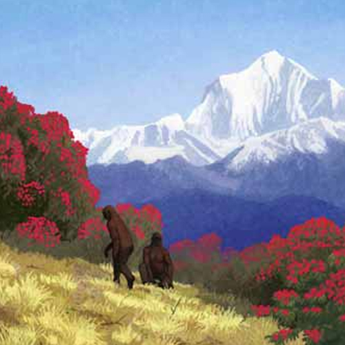 Himalayan Yeti inwards summertime pelt, surrounded past times flowering rhododendron. Image past times John Conway, from the forthcoming Cryptozoologicon. |